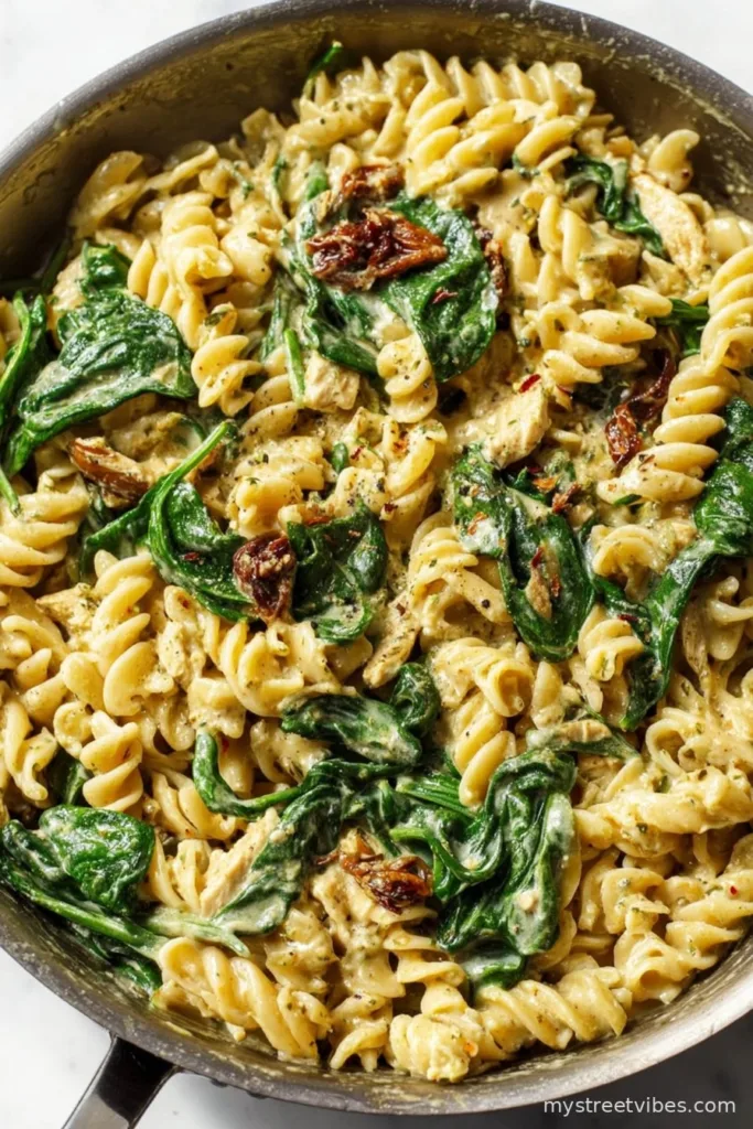 Simple Creamy Chicken Pesto Pasta with Spinach