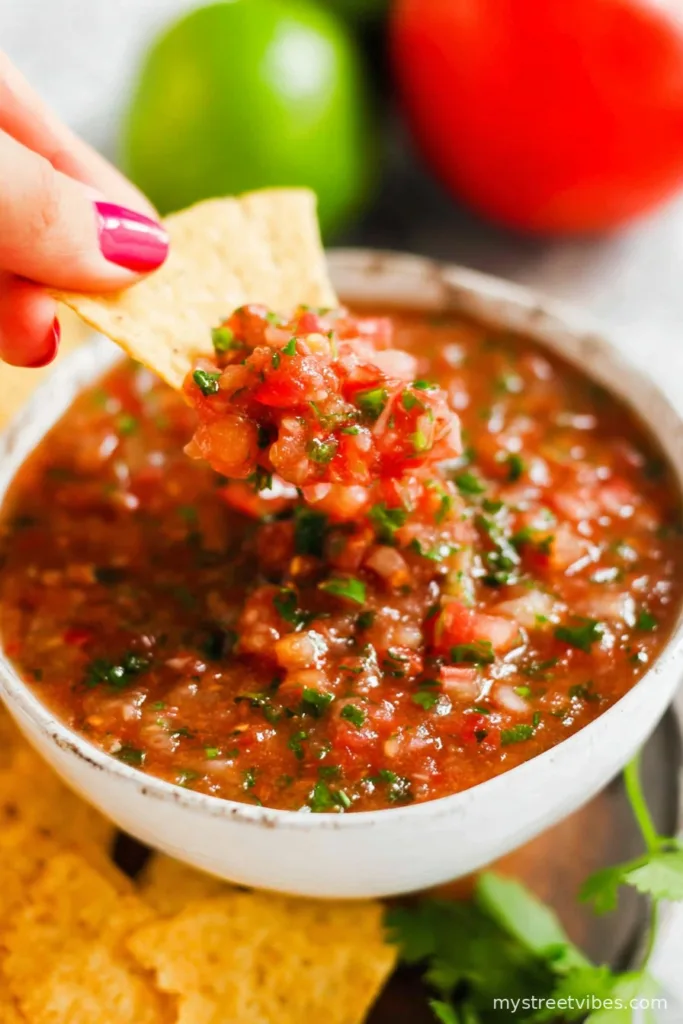 Standard: With salty tortilla chips, of course. But also, I spoon it on scrambled eggs (no joke—try it). My cousin’s obsessed with pouring salsa over grilled fish which, to be fair, is kind of amazing. I’ve even dolloped it onto leftover rice instead of sauce. Oh, and at family get-togethers, we put a bowl out next to the guac and see which disappears first. Spoiler: it’s a tie every time.