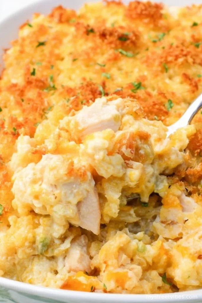I make this when the kids come home hangry from soccer. Or, if I’m honest, when I’m just in desperate need of crunchy, creamy comfort food. It’s no-fuss, you can sneak in whatever veggies you’ve got rolling around in the crisper. My family goes nuts for the buttery cracker topping (I swear, half the dish mysteriously disappears during the ‘setting’ phase). Plus, it’s brilliant for using up that last bit of rotisserie chicken you maybe forgot about in the fridge. (Don’t worry, as long as it passes the sniff test, you’re good.) Have I tried shortcuts? Oh, plenty—once I tried microwaving the rice and, er, let’s just say the family still brings up ‘that crunchy casserole’ every now and then.