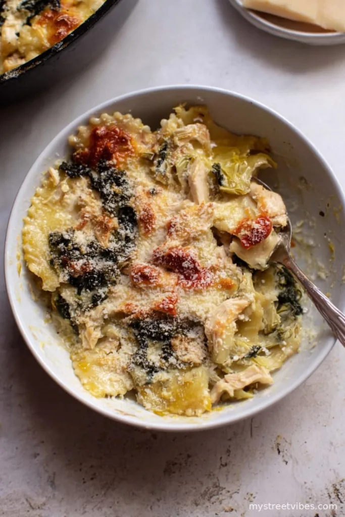 And there it is—my semi-chaotic, very loved spinach artichoke and chicken skillet lasagna. Oh, and if you find a way to not eat a third helping, let me know your secret… because I sure haven’t figured it out yet!