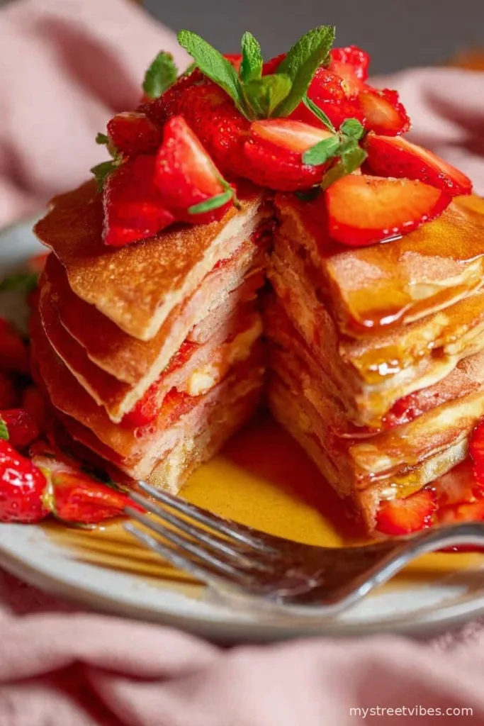 Well, let me tell you, strawberry pancakes are my go-to whenever the weekend rolls around and I want to feel like everything’s under control—even if my kitchen looks like a tornado’s paid a visit. There’s this one memory stuck in my head: me, half-awake, trying to flip pancakes while my cat stretched on the table (cheeky thing). These are the pancakes my niece requests every time she visits—though to be fair, I think she just likes stealing the strawberries off the plate before I get them on the cakes. Anyway, if you love a breakfast that’s a little messy and a lot tasty, stick around because these are the sort of pancakes that never last more than 10 minutes around here.